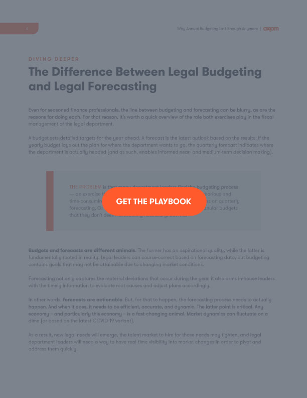 In this whitepaper, we arm legal department leaders with a three-step forecasting playbook so they can implement agility-based modeling and course-correct to better address spend in real time.