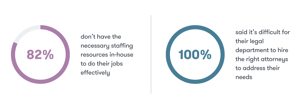 The strain on in-house legal teams is palpable, with 82% of legal departments lacking the staffing resources required to effectively discharge their responsibilities, a figure 3% higher than their enterprise counterparts. The ability to hire the right attorneys to address the mounting needs of these departments has become a significant hurdle, as evidenced by 100% of SMB legal leaders highlighting the difficulty in securing suitable legal talent.