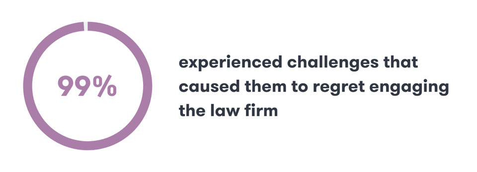 Traditionally, legal departments have turned to law firms for support, with 95% of SMB legal leaders outsourcing an average of 23% of their work to these external entities. Over half (51%) shared the reason was due to a lack of in-house capacity or specialist expertise. However, the landscape is shifting with law firm rates on the rise and a glaring gap in their ability to offer actionable business advice over conceptual legal insights. A staggering 99% of SMB GCs and legal leaders who engaged law firms last year found themselves facing challenges that led to regrettable outcomes, signaling a need for more effective alternatives.
