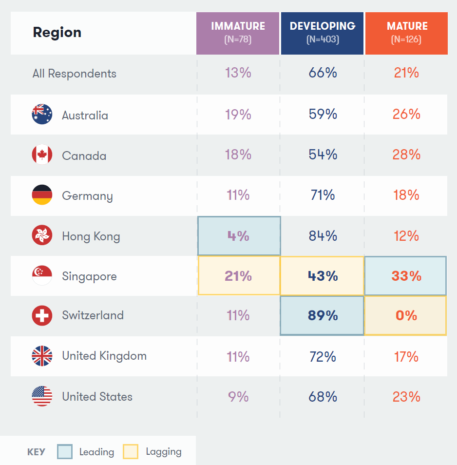 - Singapore: 33% mature –– The highest maturity rate globally