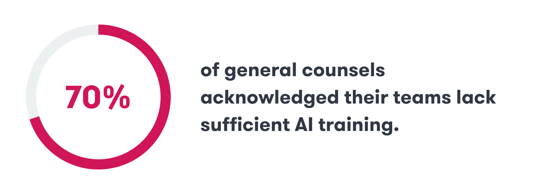 AI now influences 38% of in-house legal decisions—a remarkable statistic that highlights both the growing trust in AI and the risks it brings. However, our research uncovered a concerning implementation gap: 70% of GCs acknowledged their teams lack sufficient AI training.