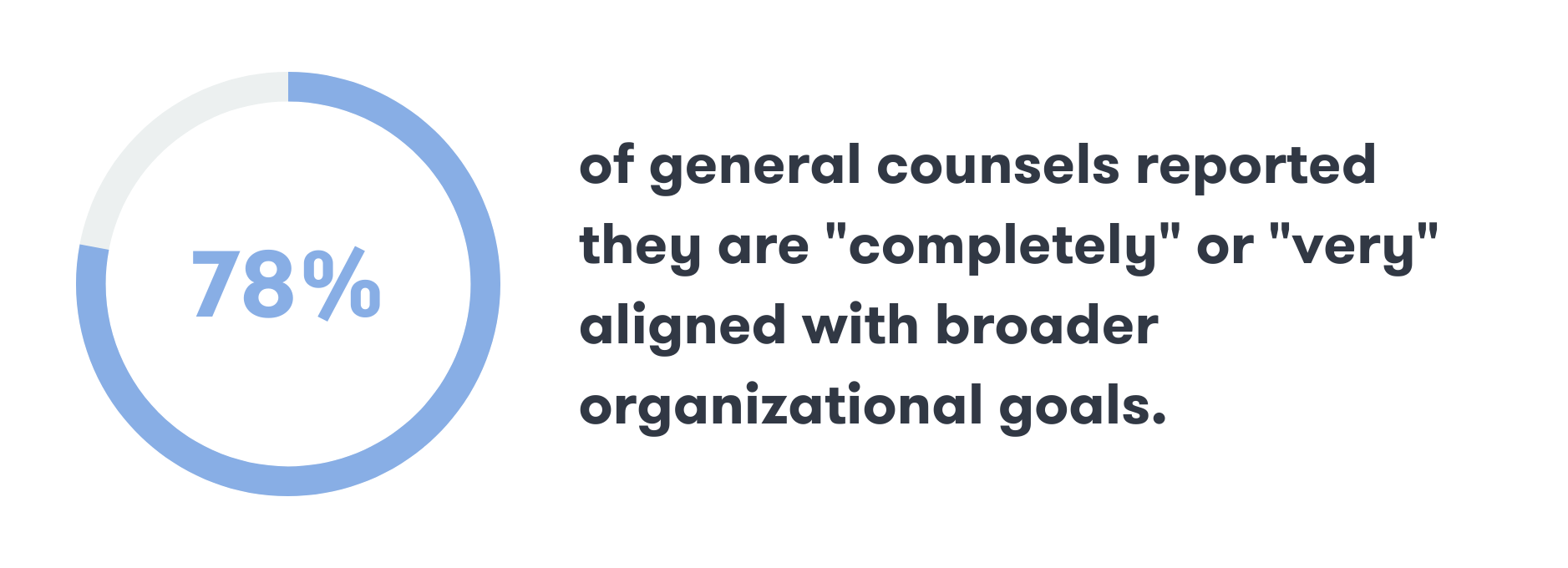 Our research shows that 78% of GCs report they are "completely" or "very" aligned with broader organizational goals, demonstrating a significant shift in how legal departments view their role. This alignment is crucial for securing the resources needed to build truly resilient teams.