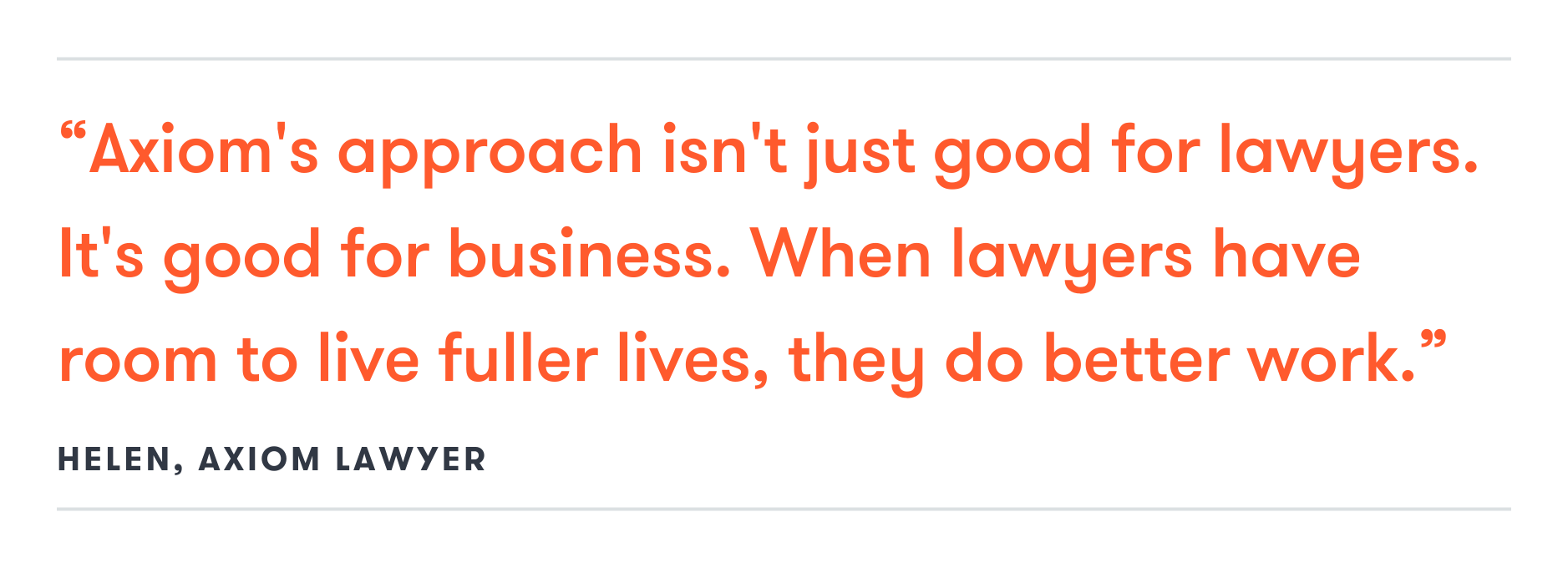 Axiom's approach isn't just good for lawyers. It's good for business. When lawyers have room to live fuller lives, they do better work.