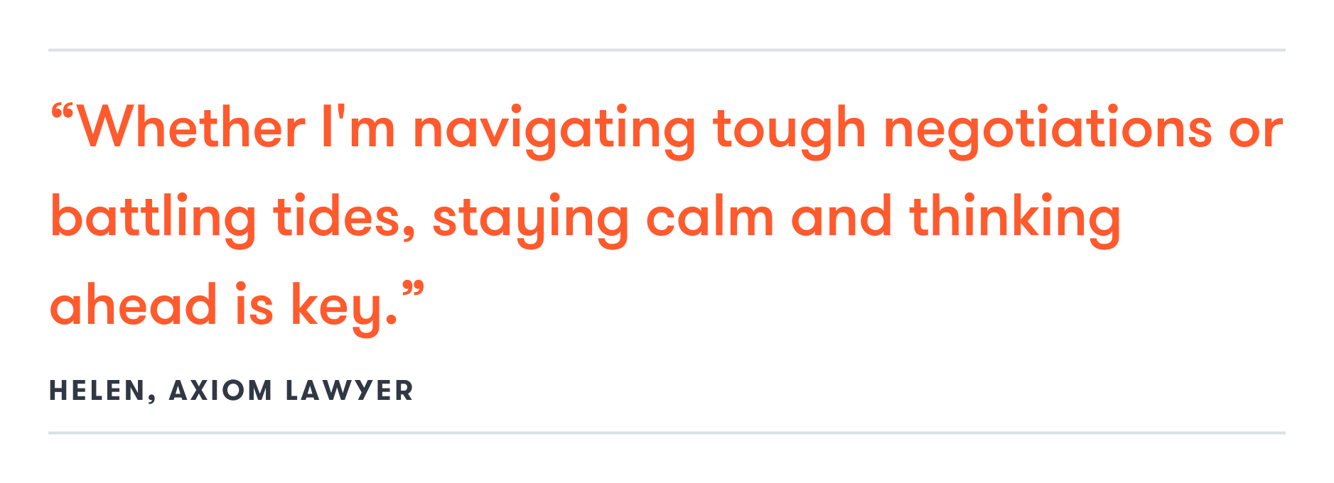 As Helen prepares for her Channel swim later this year, she carries with her not just the hope of reaching France but also the lessons learned through years of perseverance, grit, and self-belief. Whether she's navigating tough waters or tough negotiations, Helen demonstrates the caliber of legal talent businesses can access through Axiom and the fulfilling career path available to lawyers ready to redefine their professional journey.