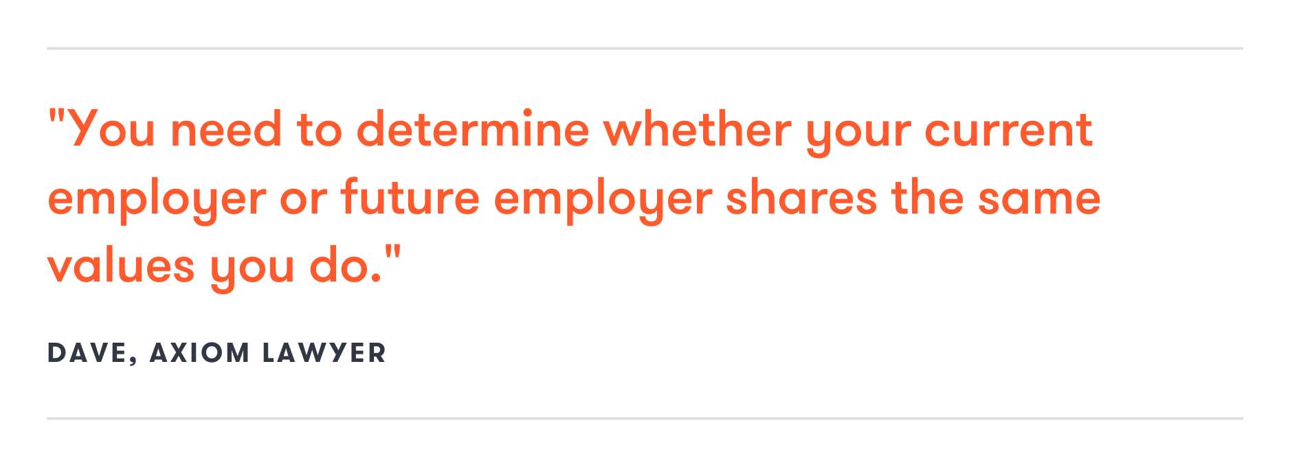 When asked what advice Dave would share with in-house counsel who are looking to improve their work-life balance, he responded, “You need to determine whether your current employer or future employer shares the same values you do.”