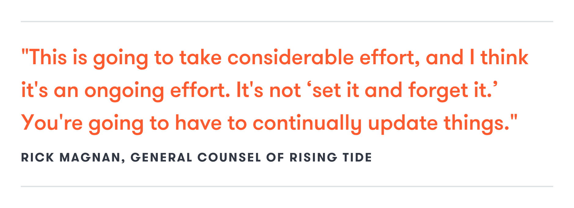 While it may feel like the obvious next step, McGrath, Magnan, and Hayter couldn’t stress enough how important it is to address these complex challenges by forming cross-functional teams that include but are not limited to legal, IT, and business leaders.