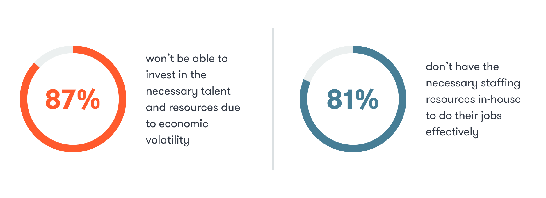 According to the survey results, 87% of GCs worry their legal departments won’t be able to invest in the talent and resources they need in 2024, and 81% say they don’t have the staffing resources in-house to do their jobs effectively.