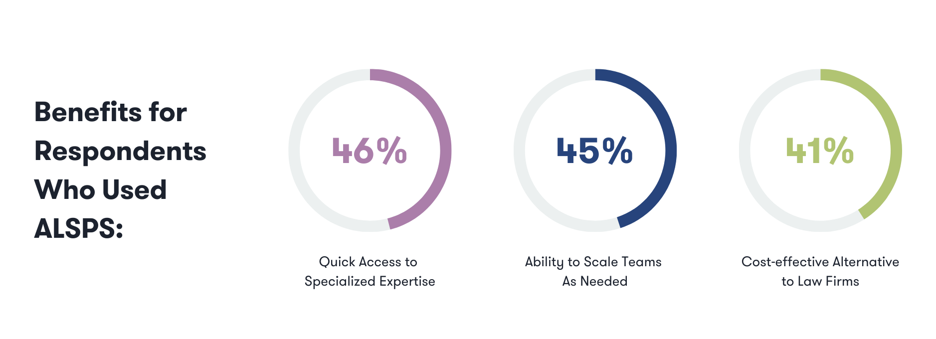 With specialized knowledge gaps significantly outranking simple resource constraints, legal departments are turning to flexible talent solutions. Of the 91% of respondents who used alternative legal service providers (ALSPs) in the past year, they reported three key benefits: