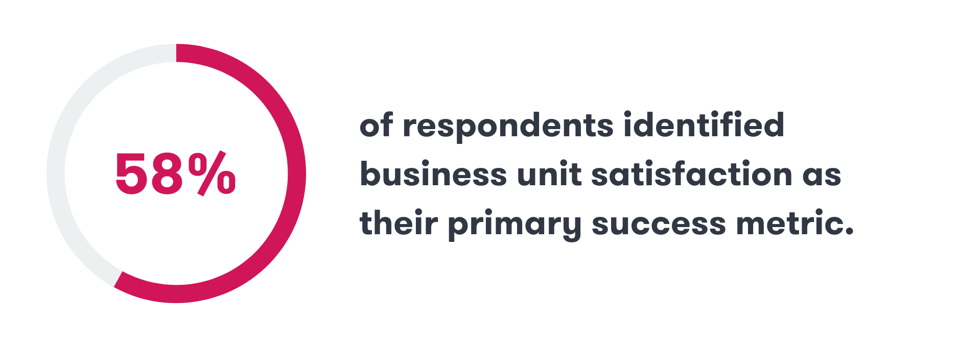 Our survey confirms this approach, with 58% of respondents identifying business unit satisfaction as their primary success metric, ranking it even higher than risk mitigation.