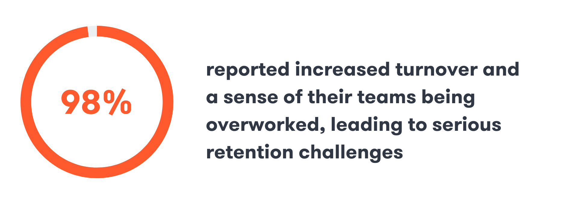 In-house legal teams are increasingly grappling with heightened workloads, limited resources, and a significant rise in employee burnout. Nearly 98% of GCs surveyed report increased turnover and a sense of their teams being overworked, leading to serious retention challenges.