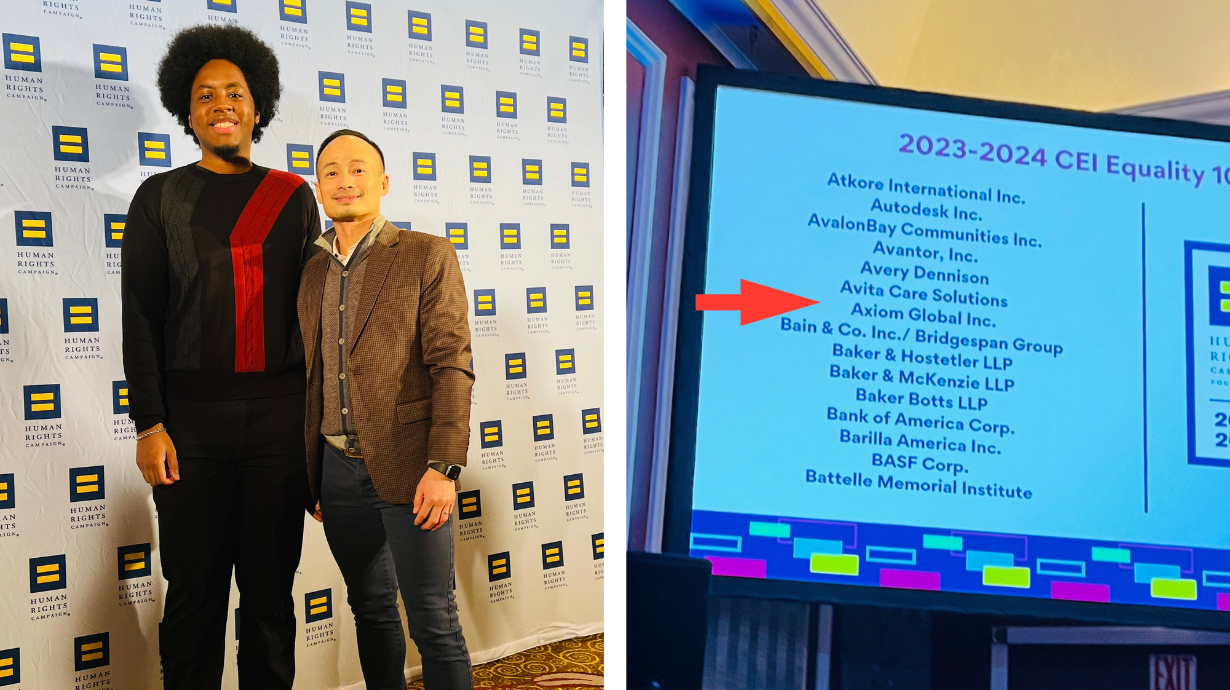 ERG members Kyle Ireland, Senior Manager and Head of DEI & People Experience, and Loun Khammy, Director of Financial Planning & Analysis, represented Axiom at the reception in New York City, joining other businesses awarded the honor. “It was an honor to co-accept the award on behalf of Axiom at last night's HRC Equality 100 Award Reception,” Loun said, “I am beyond proud to see Axiom make it to the coveted list, alongside 545+ employers out of 1,384 companies who actively participated in the survey. The strong support and commitment from the top leadership and Axiom community made this happen.”
