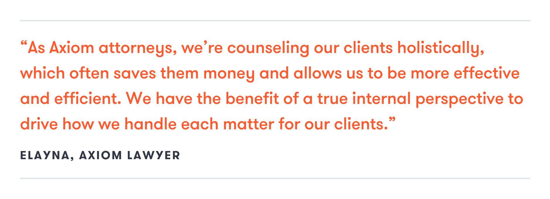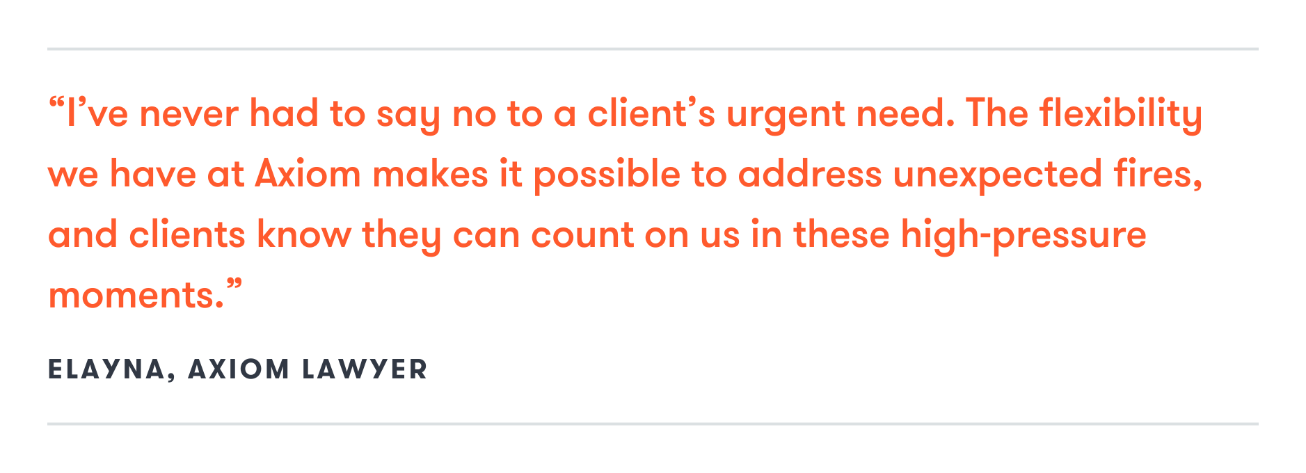 Elayna reflects on the unique flexibility and responsiveness Axiom offers, emphasizing how the model has allowed her to be more agile in addressing clients’ needs, particularly when faced with sudden regulatory shifts or other urgent challenges.